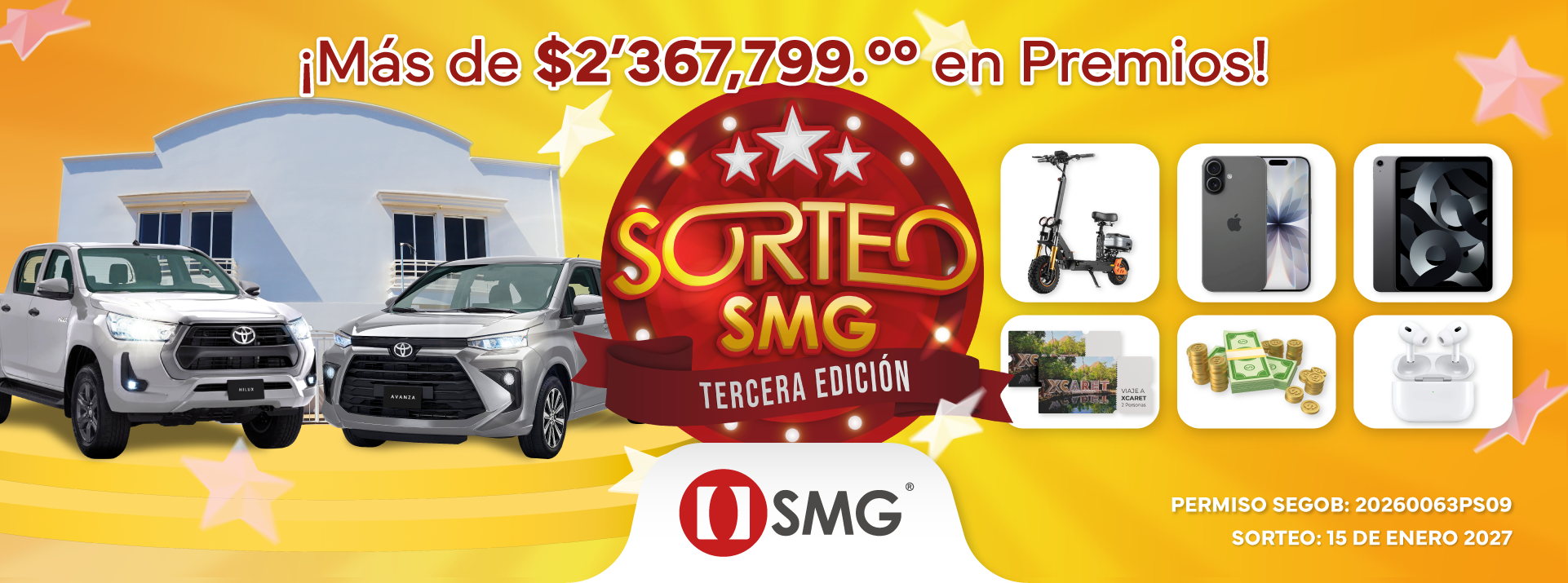 La promoción está desarrollada por Caja SMG y no está patrocinada, avalada ni asociada a Facebook, por lo que los participantes liberan a Facebook de toda responsabilidad por los eventuales daños que se puedan derivar.